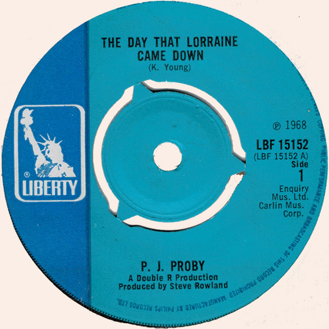 Proby, P.J.: The Day That Lorraine Came Down/Mery Hoppkins Never Had Days Like These, 1968 seven-inch single