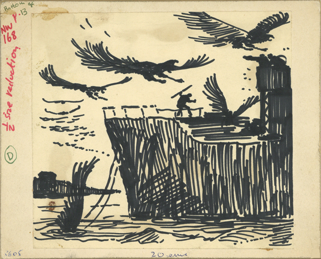 New Worlds (#168), original artwork (D) by James Cawthorn